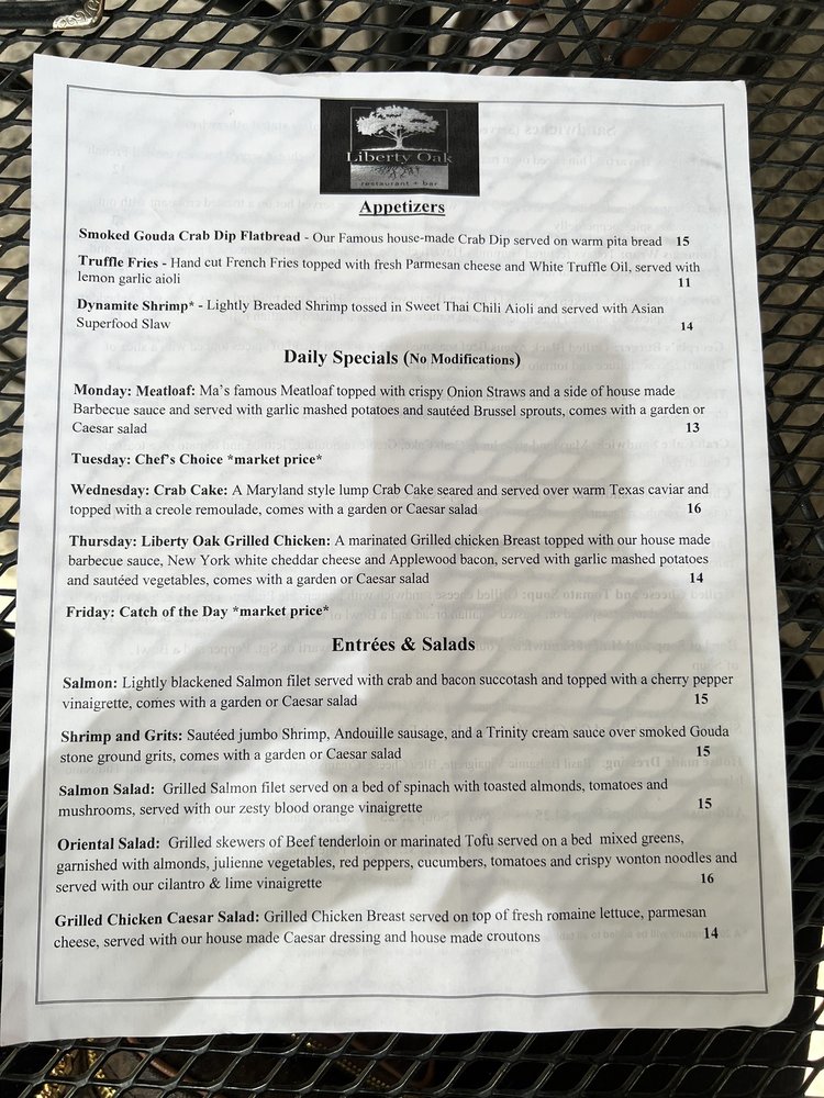 Located in Greensboro, NC, Liberty Oak Restaurant & Bar is a top-notch dining destination offering a diverse menu of New American cuisine. The restaurant prides itself on its classy atmosphere, complete with a full bar and outdoor seating options. With a plethora of vegetarian options, it caters to a variety of dietary preferences. From breakfast and brunch to lunch and dinner, Liberty Oak has something for everyone. The restaurant provides a range of amenities such as free Wi-Fi, waiter service, and even features entertainment options like pool tables and TVs. Whether you're looking to enjoy a meal with friends or family, Liberty Oak's accommodating environment makes it a great choice. Don't miss out on the opportunity to try their delicious dishes - it's a dining experience you won't soon forget.
